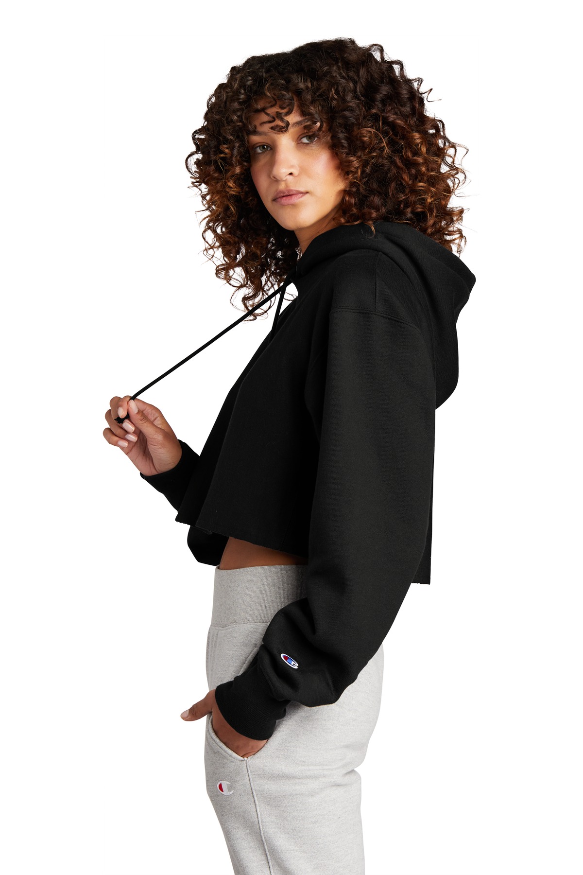 Champion Women's Reverse Weave Cropped Cut-Off Hooded Sweatshirt RW01W - Black - Custom