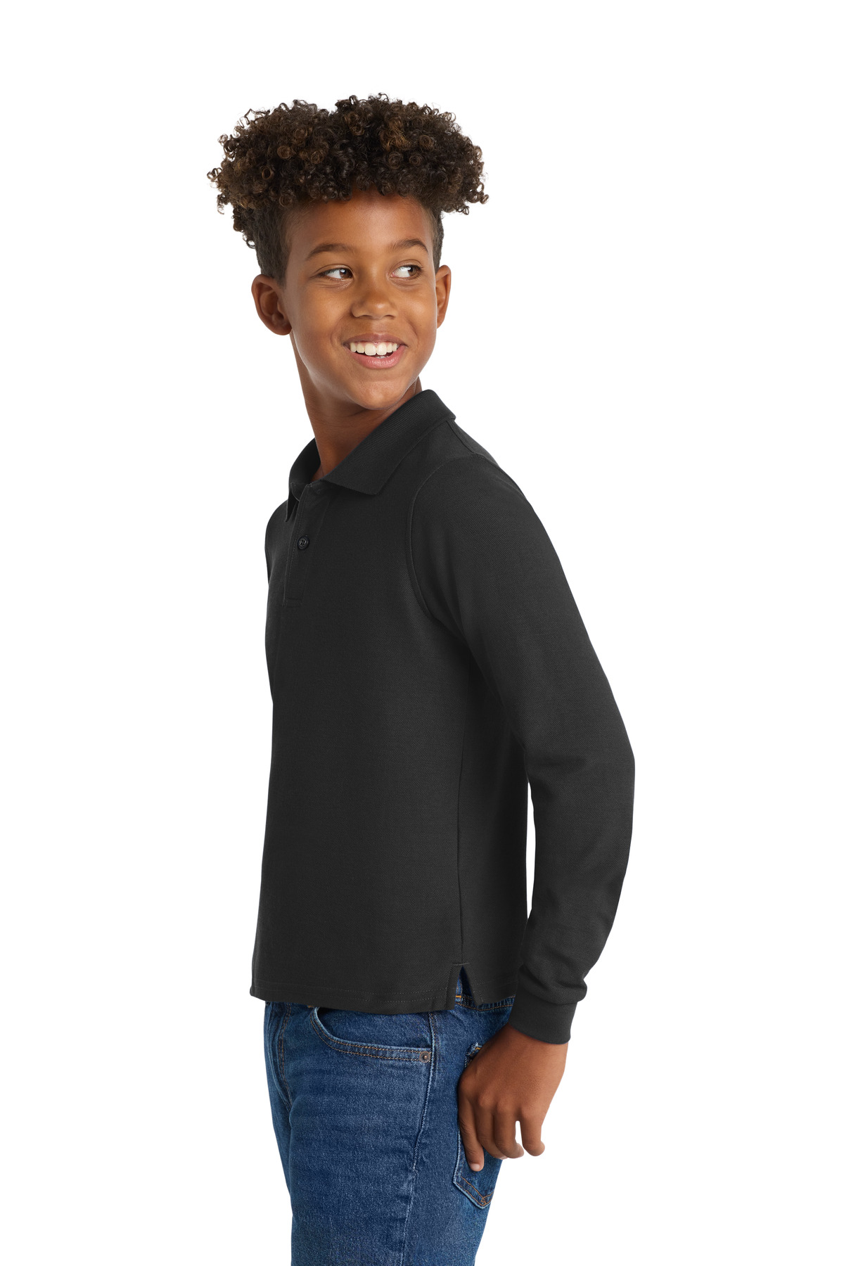 Port Authority Youth Long Sleeve Silk Touch Polo. Y500LS - Black - High